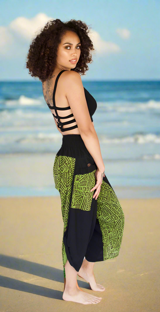 Popular with Yogi's, Message Therapists, fire spinners and any other activities that require a free range of motion and lots of comfort. Wear them buttoned up on the bottom to give the shape of the leg a totally unique look.