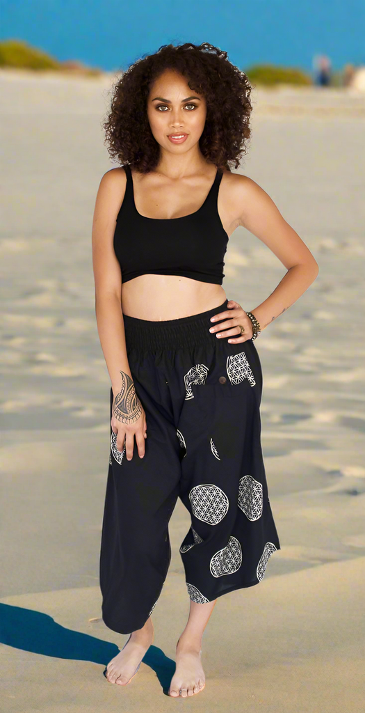 Popular with Yogi's, Message Therapists, fire spinners and any other activities that require a free range of motion and lots of comfort. Wear them buttoned up on the bottom to give the shape of the leg a totally unique look.
